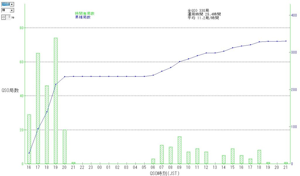 19時過ぎにはEUはフェードアウトしてきてました。その後もAFやEU、NAのLP狙いでCQを出し続けるもQSOできたのはYB 1局のみでした。