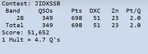2日目朝起きて聞いてみると日の出前からW6方面は聞こえておりいい感じとおもったのですが、日の出後も聞こえるのは西海岸のみでVE等北の方は聞こえてきません。磁気嵐が発生していたようでした。9時過ぎにW0から呼ばれて何とかZONE4を得ることができました。その後は、OC向けにCQだすもののたまに呼ばれるのはYB位でVKも参加局が少なかったです。このままZLはできないかと思ったら1局呼んできてZONE32も得ることができました。時々ANTを東に向けてKH6を狙いますが結局呼ばれることなくZONE31もできませんでした。