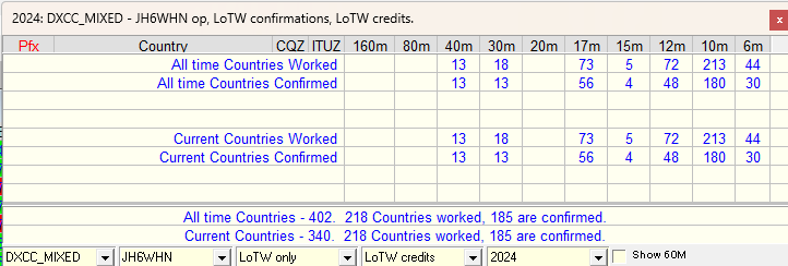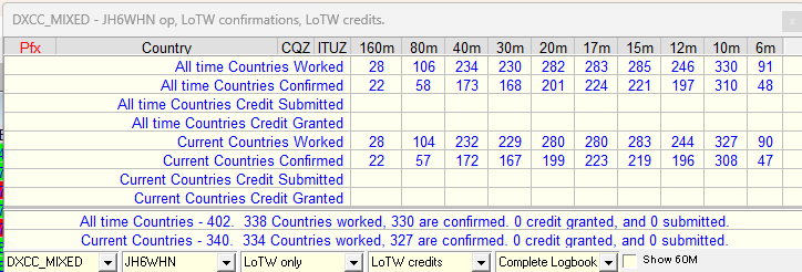 MIXでのDXCCはLotwで8Pが増えて327になりました。